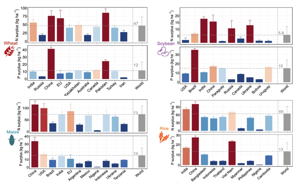 verfehlt denn auch an 26 Prozent der Messstellen den EU-Nitratgrenzwert von 50mg/l, an 16 Prozent der Messstellen steigen die Nitratwerte sogar weiter an. Eine Ende 2025 veröffentlichte Studie zur Nährstoffeffizienz zeigt, dass es erhebliche Nitrat- und Phosphorüberschüsse in den weltweit größten Anbauländern von Weizen, Mais, Soja und Reis gibt. Das heißt, es stecken Überschüsse in einheimischen Lebensmitteln und bei jenen, die Deutschland importiert.